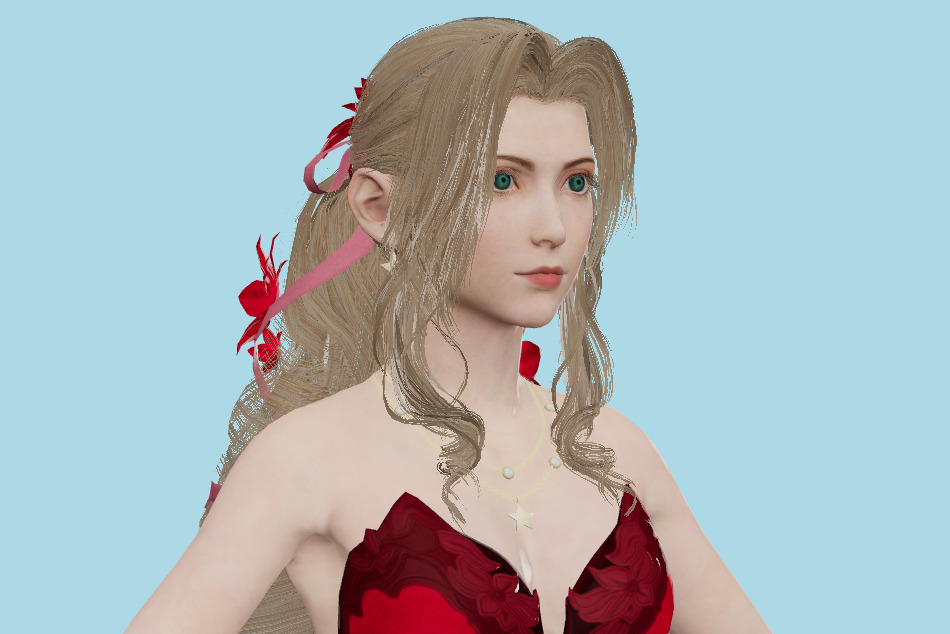 Aerith Red Dress 3D Model, Fully textured with UV Mapping and materials.